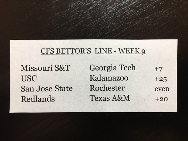 It’s Week 9. Teams are tired, banged up, and in need of that final burst of energy needed to win in the CFS. Good luck, teams. Now, onto the games!