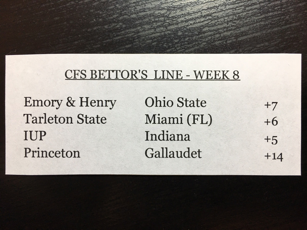 Week 8 is when the real teams stand up to be counted as championship contenders. No, there’s no CFS championship, but you get the idea. Onto the games!