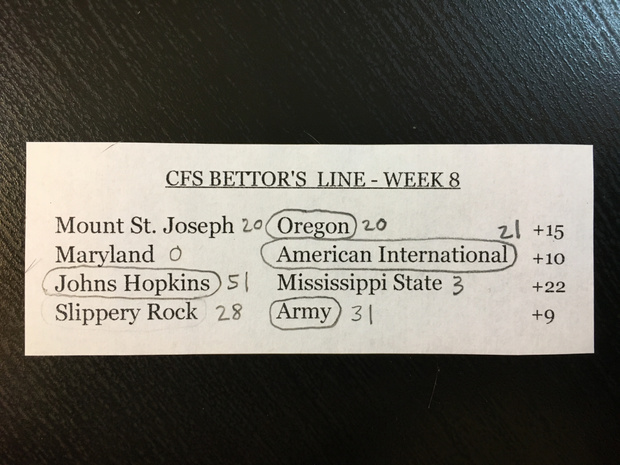 Oregon plants its flag atop of Mount St. Joseph. Johns Hopkins performs successful surgery on Mississippi State. Army scales The Rock with ease, probably before breakfast, just to stretch their limbs.